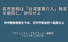 だからこそ、米帝の世界覇権体制が急速に後退し、西側帝国主義の危機が深まるにつれて、その侵略欲・好戦性は歴史的画期をなすほどに高まっている。かつてなく危険な、長期に及ぶ戦争に向かう新しい時代が始まっている。米帝の「三正面戦争」のエスカレーション然り。ウクライナ代理戦争の持続に加え、ガザ虐殺支援、イラン空爆ですでに限界が見えているにも関わらず、対中国戦争を準備し、戦略核での優位追求を開始した。ドイツ・欧州帝国主義は、米帝の衰退を補うだけでなく、独自の帝国主義的衝動を高め、戦争国家へと舵を切った。日本帝国主義も同じ歩調だ。世界の反戦平和運動の課題は、全人類にとって平和・安全・生存を根底から脅かす最大の敵である米帝国主義に矛先を向け、これらの帝国主義戦争を阻止し、終結させること、世界平和の実現である。