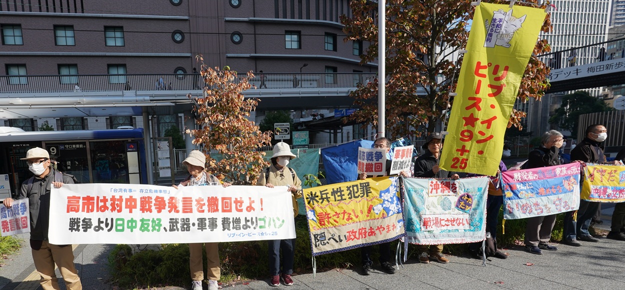 何よりも高市発言が何を意味するかを語ることだ。それは自衛隊が「台湾有事」を口実に「米日共同先制攻撃」することである。中国の反撃を日本が一手に引き受け、日本列島全体が火の海になり焦土と化し、膨大な死傷者を出す日中全面戦争である。これを歴代自民党政権が計画し、先制攻撃兵器の調達から日米軍事演習まで着々と準備してきた。ところが、こんな恐ろしい冒険主義的戦略を国民には一切知らせず、メディアもそれを知りながら押し隠してきたのである。これを全面的に暴露する必要がある。反戦運動の任務は重大だ。