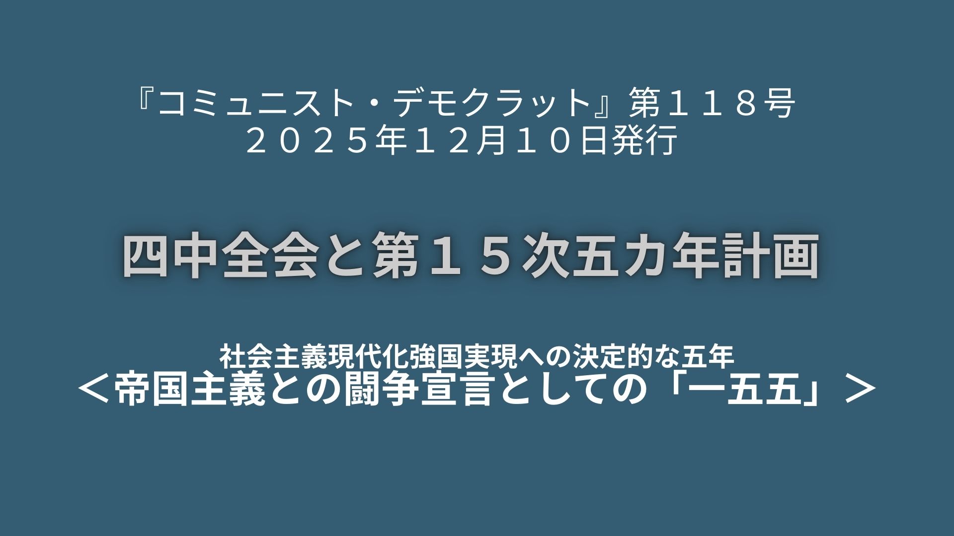 しかし、帝国主義がこのまま衰退に手をこまねくはずがない。中国は、米・西側帝国主義との闘いはこれからだと考えている。「一五五」には、今後5年間の政治・経済・ハイテク・防衛・民生の「社会主義総合国力」が全て盛り込まれている。すなわち、世界最大規模の人口を誇る「巨大国内市場」、帝国主義に追いつき追い越すほどのハイテク技術力、世界の製造業の3割以上の保有、これら全体を武器にした社会主義的貿易の拡大力を背景に、新興・途上諸国(グローバル・サウス)は言うまでもなく、西側帝国主義諸国に対しても威力を発揮する。