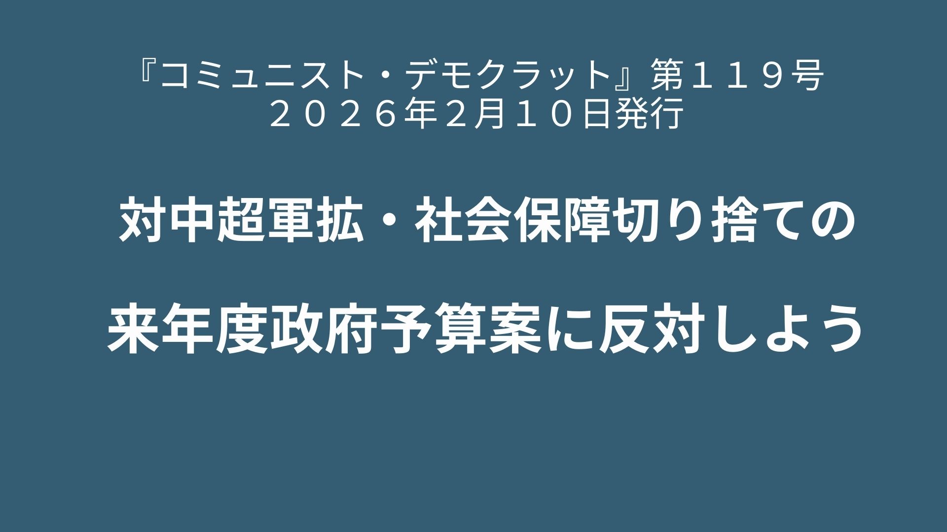 来年度予算政府案の審議が始まる。政府予算は高市政権が進める戦争国家化の財政的な裏付けであり、国家運営の階級的意志を集中的に表現する。国会内で野党の批判がますます弱まるからこそ、内容を徹底的に批判しなければならない。