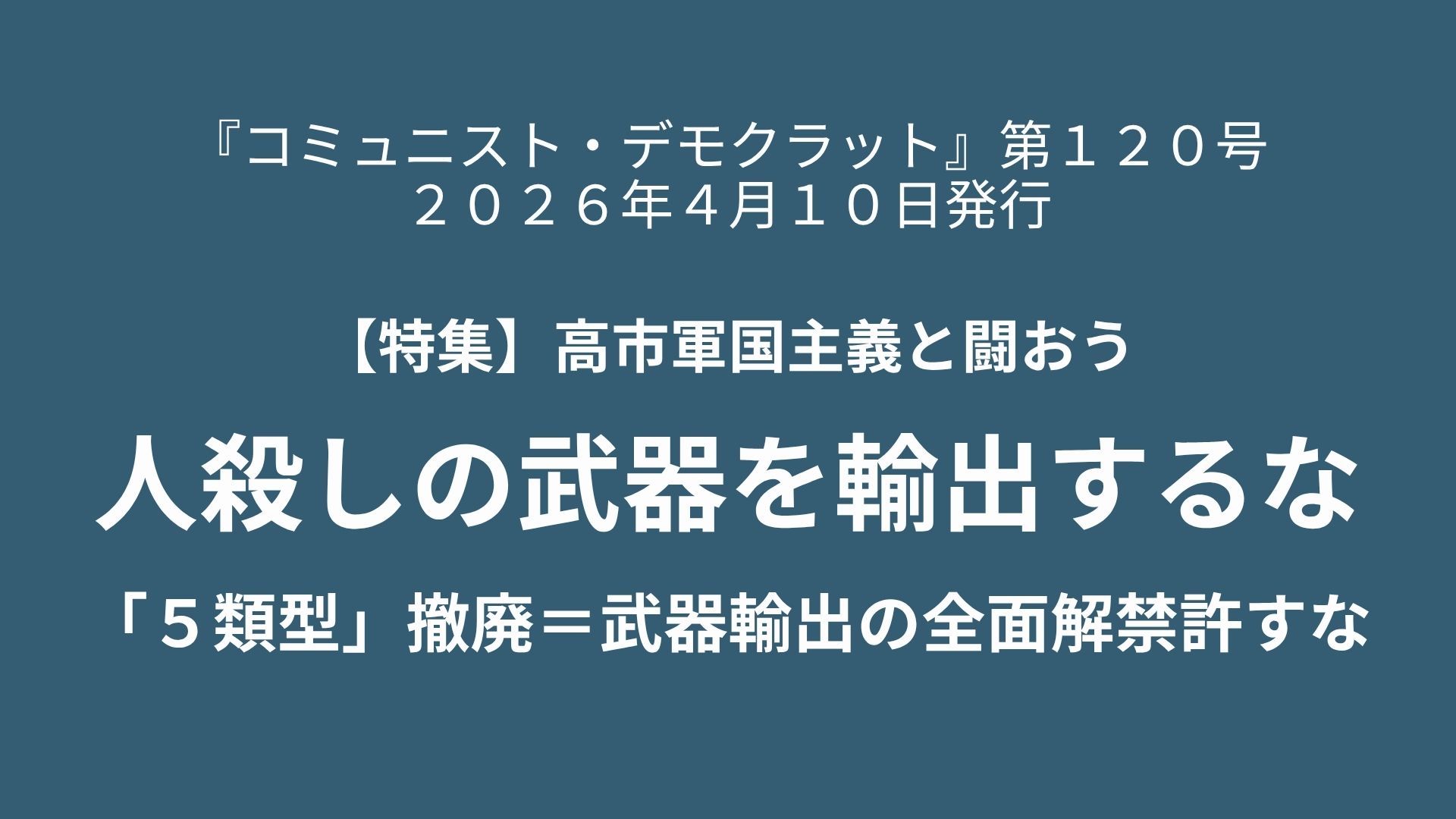 日本社会は今、戦後民主主義の基盤が急速に掘り崩され全面的な軍国主義化が急速に進む極めて深刻な局面に直面している。以下に掲載する3本の記事は、高市政権の下、今国会で進められる武器輸出の全面解禁、国家情報機関の巨大化、国家象徴の刑罰的保護という一連の政策の意味を暴露し批判するものだ。これらは、国家を戦時体制へと再編する包括的で構造的な主要な柱のひとつである。