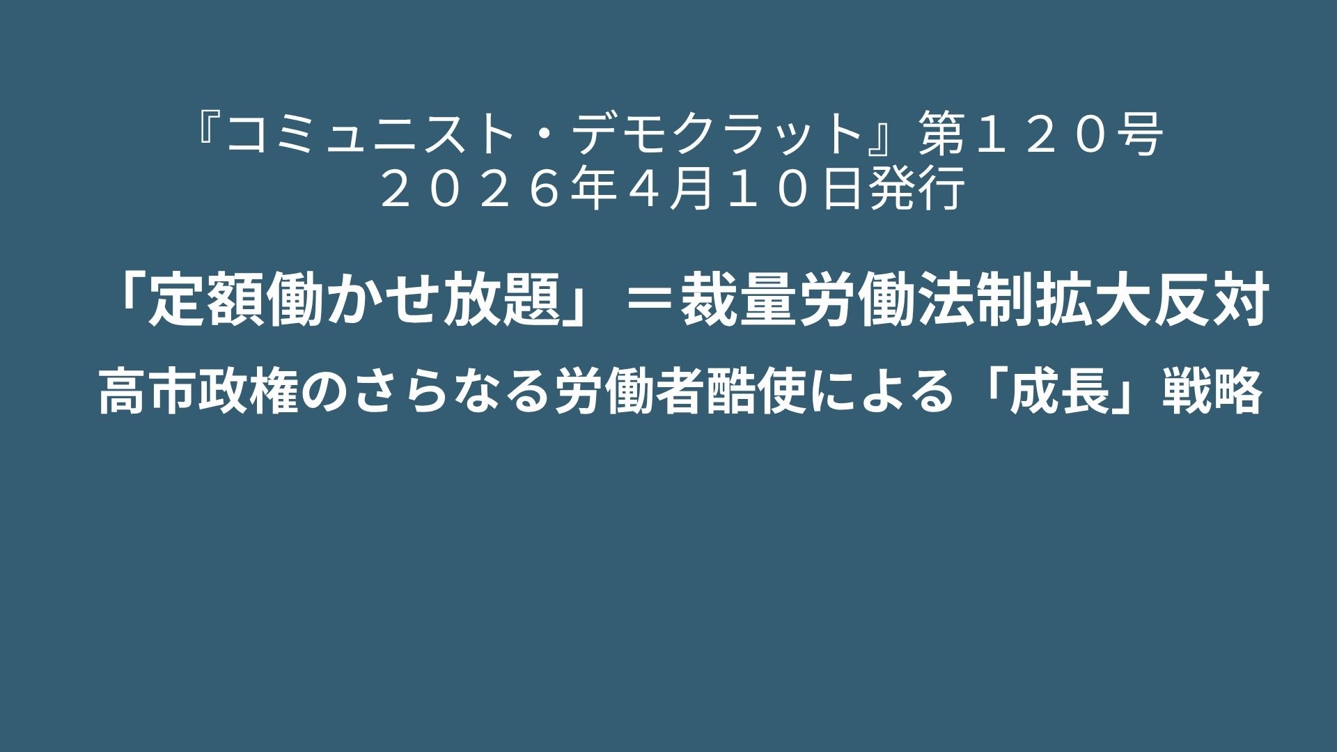 高市政権は、先進国で最悪水準の長時間労働、深刻な過労死の実態を覆い隠し、たえず「もっと働きたい人もいる」と述べて、またも「定額働かせ放題」実現に邁進している。
