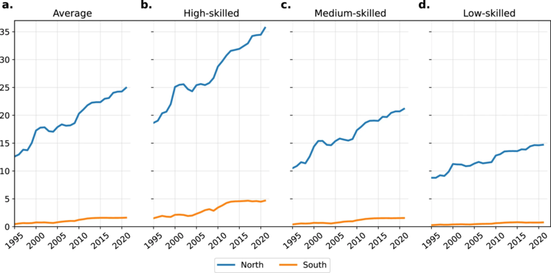 上は北の賃金、下は南の賃金 https://www.nature.com/articles/s41467-024-49687-y/figures/7