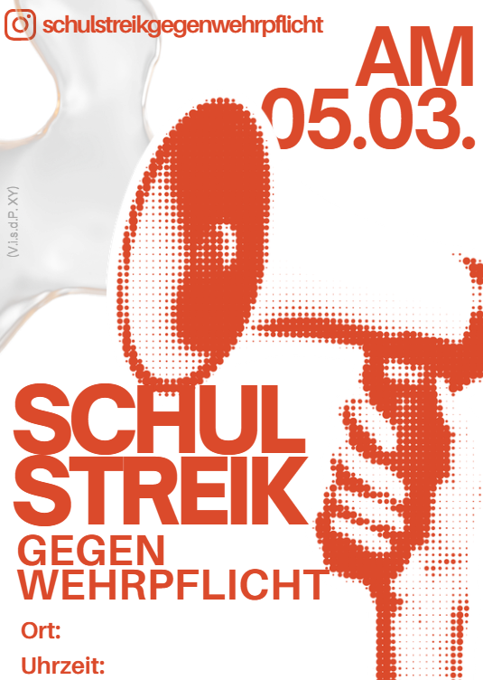 徴兵制反対学校ストライキ運動の第1回全国会議が、2月14日と15日にゲッティンゲンで開催され、12月の大行動の総括と次の方針が検討された。強調されたことは、ストライキ委員会が各学校に直接もっと深く根づき、何よりも持続的な運動を確立するということであった。労働組合青年部との連携を強化し、「一発屋」のような構造から脱却し、すべての学校に持続的な反軍国主義勢力を築いていくことを明確にした。学校の休暇期間中も活動を続ける覚悟を持った学生の中心グループが生まれ形成されていることも確認された。