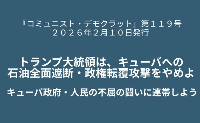 1月29日、米トランプ大統領は、キューバが米国への「異常かつ並外れた脅威」だとの全くの虚偽に基づく「国家非常事態」を宣言し、キューバへ石油を供給する国に対して、米国への輸入品に大幅関税を課す大統領令に署名した。これは現在キューバへの最大の石油供給国になったメキシコに対して圧力をかけ、キューバへの石油輸出停止を強要することを意味する。トランプ大統領は、ベネズエラへの侵略ののち、次のターゲットとしてキ...